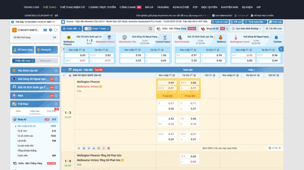 Người chơi dễ dàng tìm được trận đấu yêu thích, đặt cược trước giờ bóng lăn hoặc live betting với kèo rung liên tục cập nhật theo diễn biến.
