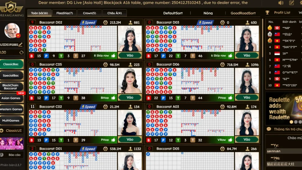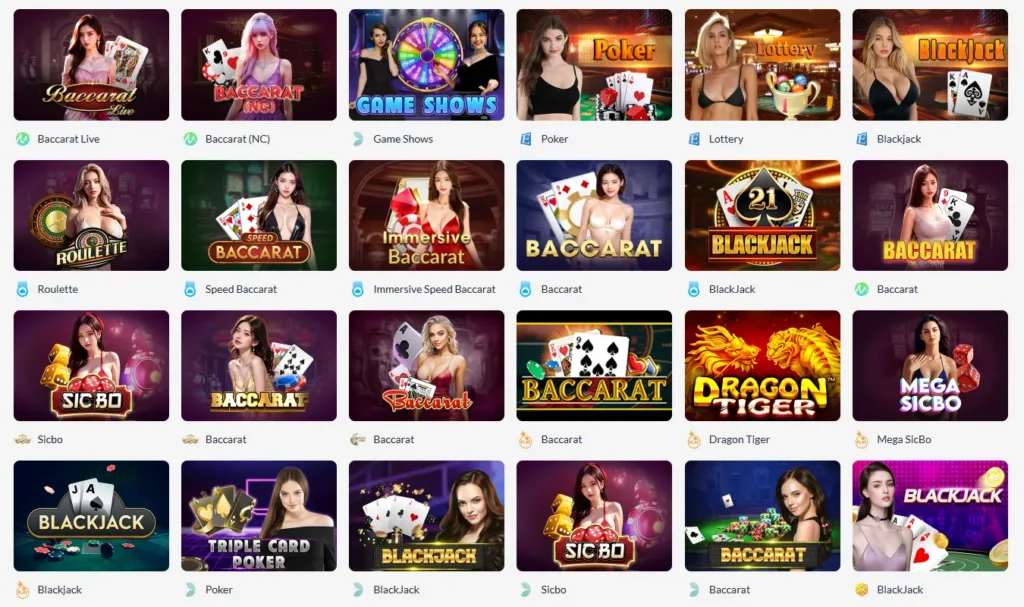Casino trực tuyến: Baccarat, Blackjack, Roulette, Sicbo với dealer trực tiếp