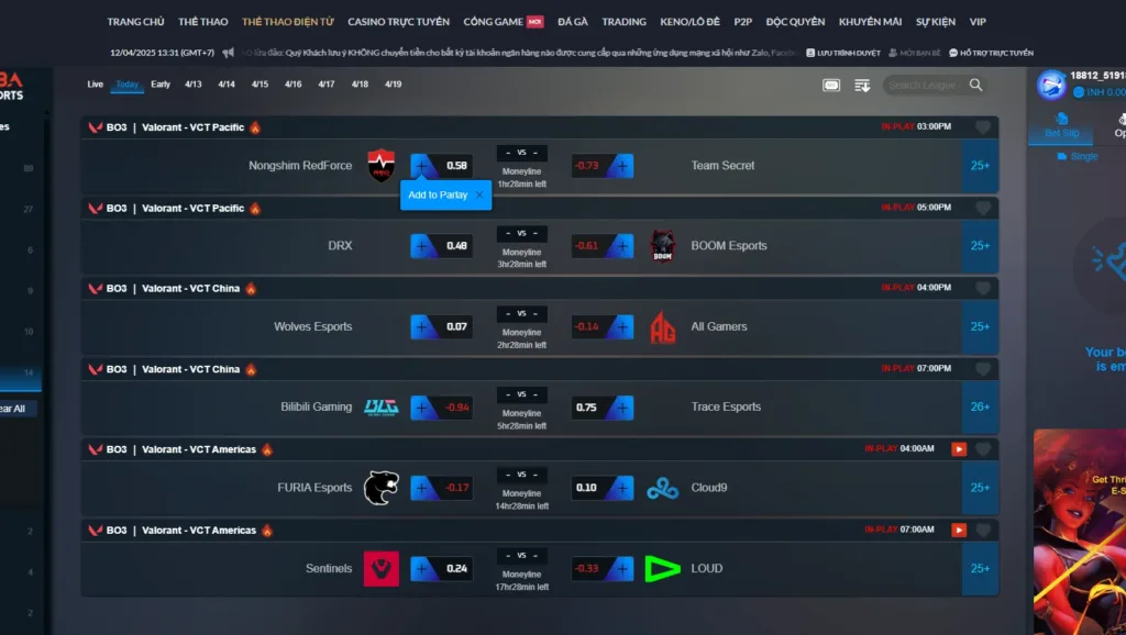 Người chơi có thể đặt cược đa dạng kiểu cược: đội thắng, tỷ số, handicap, tổng mạng, first blood, first tower… tạo nên trải nghiệm cực kỳ thú vị và giàu tính chiến thuật.