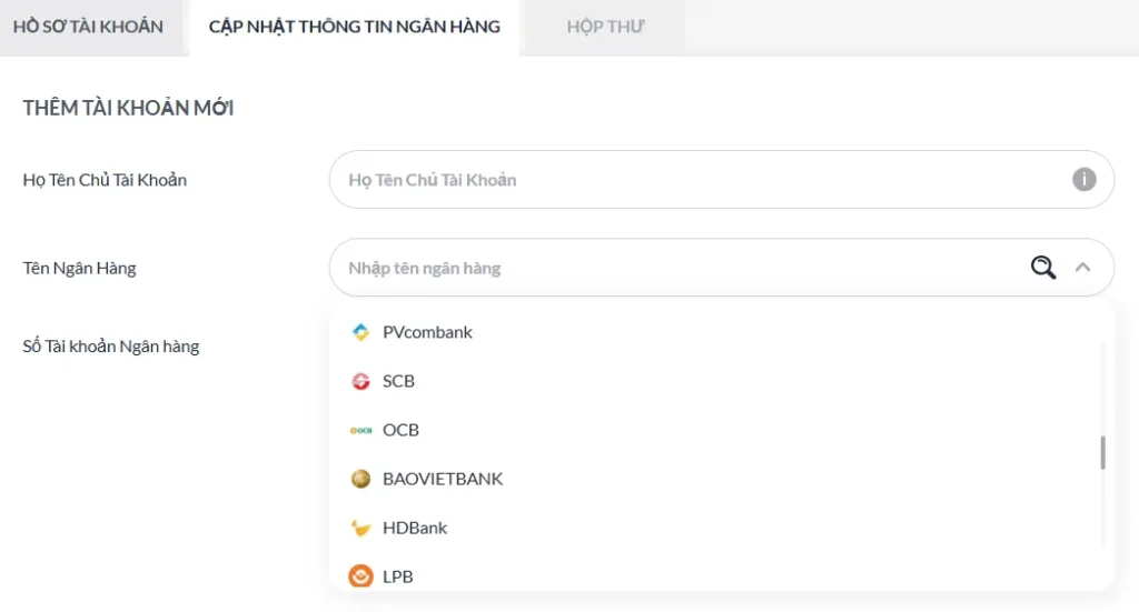 Trong trường hợp cần cập nhật các thông tin quan trọng hơn như tài khoản ngân hàng hoặc địa chỉ ví tiền điện tử, hãy liên hệ trực tiếp với bộ phận CSKH để được hướng dẫn cụ thể, đảm bảo an toàn tuyệt đối.